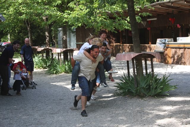 E si continua nel parco sul Tagliamento di Rivis. In 180 a far festa insieme e, tra i giochi, anche la gara dei papà con le maestre (Maristella, Paola, Pierina)in groppa. Vince il papà di Gaia con maestra Paola. Ma l’allegria vince sovrana.