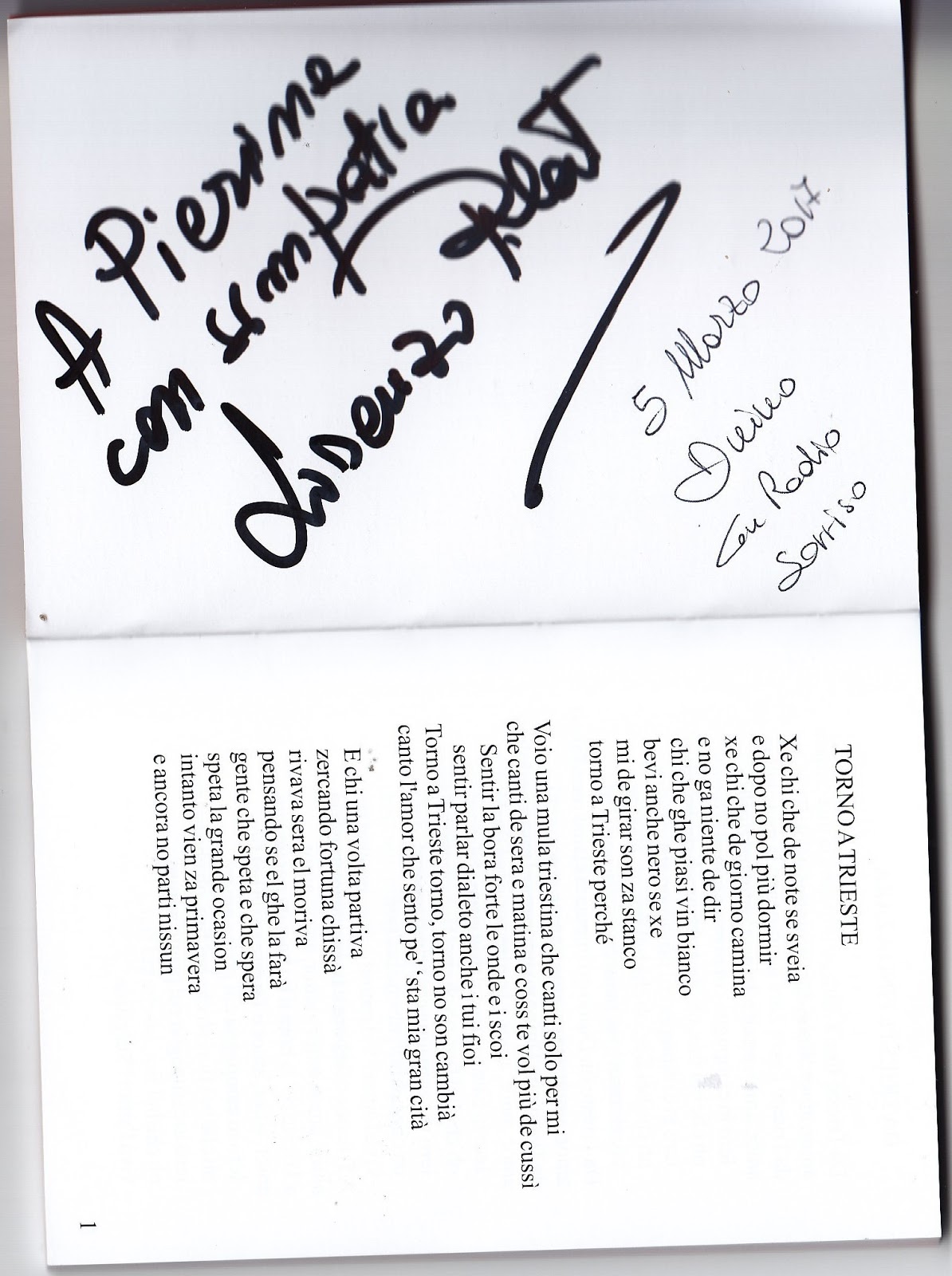 Mi ha fatto dono della sua raccolta di canzoni triestine, con dedica.