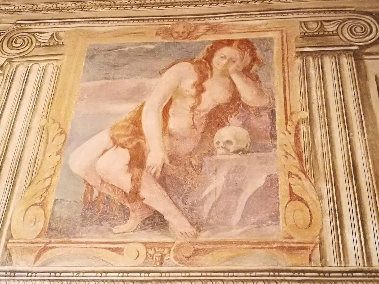 affrescato, decorato da una fontana centrale, numerose sculture in pietra e due