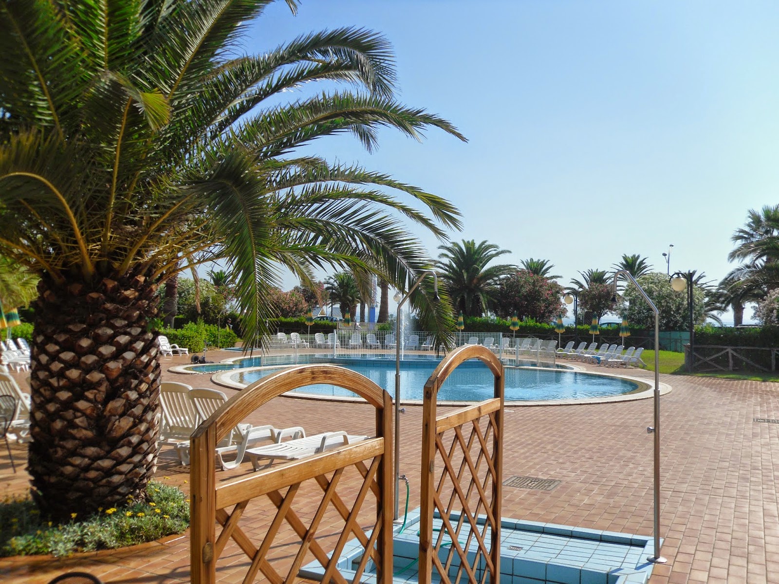 GROTTAMMARE (AP): Residence Club Hotel “Le Terrazze”. Tutto è a misura di benessere. Al profumo di oleandri bianchi e rosa e 8mila palme con i ciuffi in preghiera verso un cielo benevolo.