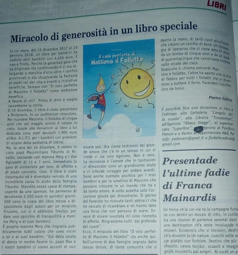 IL LIBRO “IL VOLO PERFETTO DI MASSIMO IL FOLLETTO”: 1° presentazione 15 dicembre a RIVIGNANO (UD)