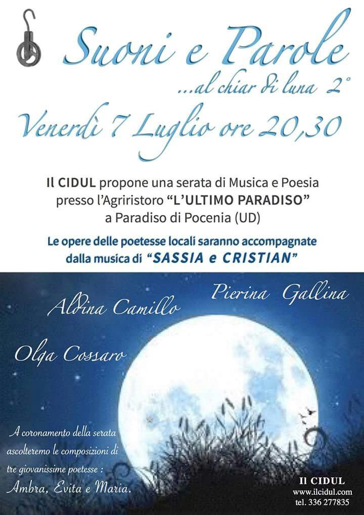 PARADISO di POCENIA (UD) – Suoni e parole al chiar di luna – 7 luglio 2017