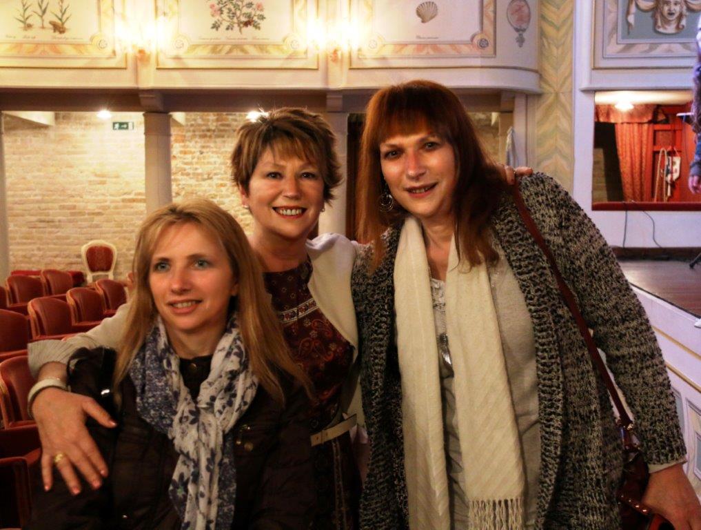 Elena Anastasia al flauto -Emma Saccomanno al pianoforteE dopo lo spettacolo, premiato dal tutto esaurito, incontri graditissimi. Qui, con Cristina Pilutti e Alice Conco. E Poi il Brindisi, a suggellare un evento che fa da cornice ad un impegno condiviso e costante.